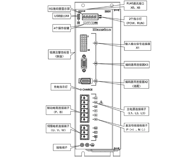 4、双编码器接口,全闭环控制。支持方波、正余弦、串口通信、旋变等形式编码器信号输入